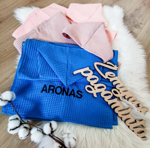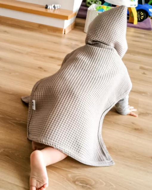 Pagamintas iš kokybiško, olandiško vaflinuko audinio. Audinys labai švelnus ir kokybiškas. Pončas padės išlaikyti šilumą, galės būti naudojamas kaip rankšluostis ar priedanga persirengimui.