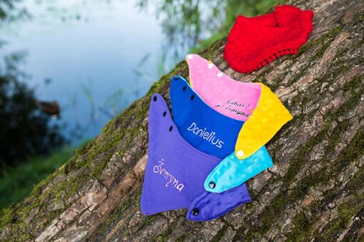 Minky ir medvilnės kaklaskarės. Viena pusė minky burbuliukai, kita – 100% medvilnė.