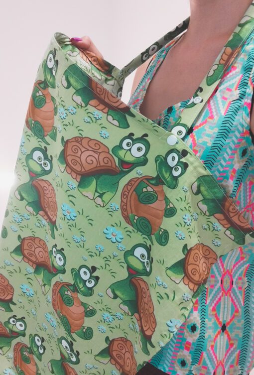 Žindymo skraistė – pats geriausiais išradimas – maitinančioms mamytėms. Kudikėlis žindo ir jį puikiai matote, kadangi padarytas specialus lankelis, kuris leidžia matyti kūdikėlį ir laisvai jam kvėpuoti. Audinys – 100% medvilnė.