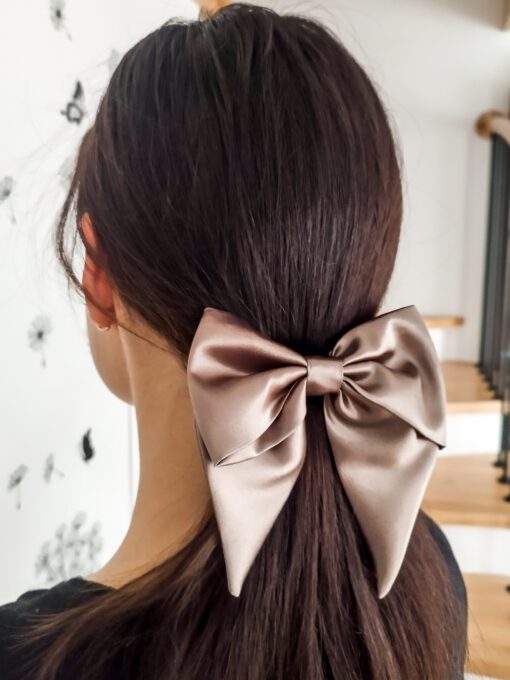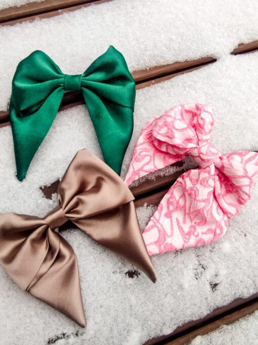 Su šiuo prabangiu kaspinuku, tikrai būsite stiliaus guru! Kaspinas išskirtinis, atrodo labai tvarkingai. Kaspino dydis 14x14cm. Segtuko dydžiai gali būti du. Tai 8cm plonesniems ir vidutinio storio plaukams. 10cm – labai storiems plaukams. Du užsegimai! Visas kaspinas yra susiūtas, nenaudojant jokių klijų! Tad jūs būsite rami, jog daiktas tarnaus ilgai.